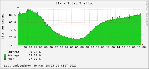 Največji slovenski operaterji so v dveh tednih po razglasitvi epidemije koronavirusa v Sloveniji in po uvedbi ukrepov za zajezitev širjenja virusa zaznali bistveno povečanje internetnega prometa, vendar ne poročajo o večjih težavah. Ozka grla so predvsem v centralnih točkah, na strežniških sistemih, kjer si prizadevajo za zagotavljanje zadostnih zmogljivosti. Tudi upravljavec slovenskega stičišča internetnih omrežij SiX je uspel zagotoviti zadostne zmogljivosti za nemoteno izmenjavo povečanega obsega internetnega prometa.